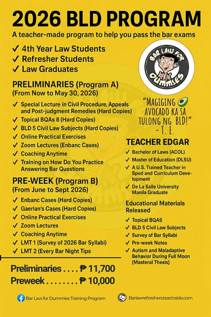 As for Law Students, it is better for your to start with BLD Materials even your first year. You know why? Nasa BLD Mats lahat if not all ang mga questions ng mga professors Hahahaha! Kaya makaka-95% ka.